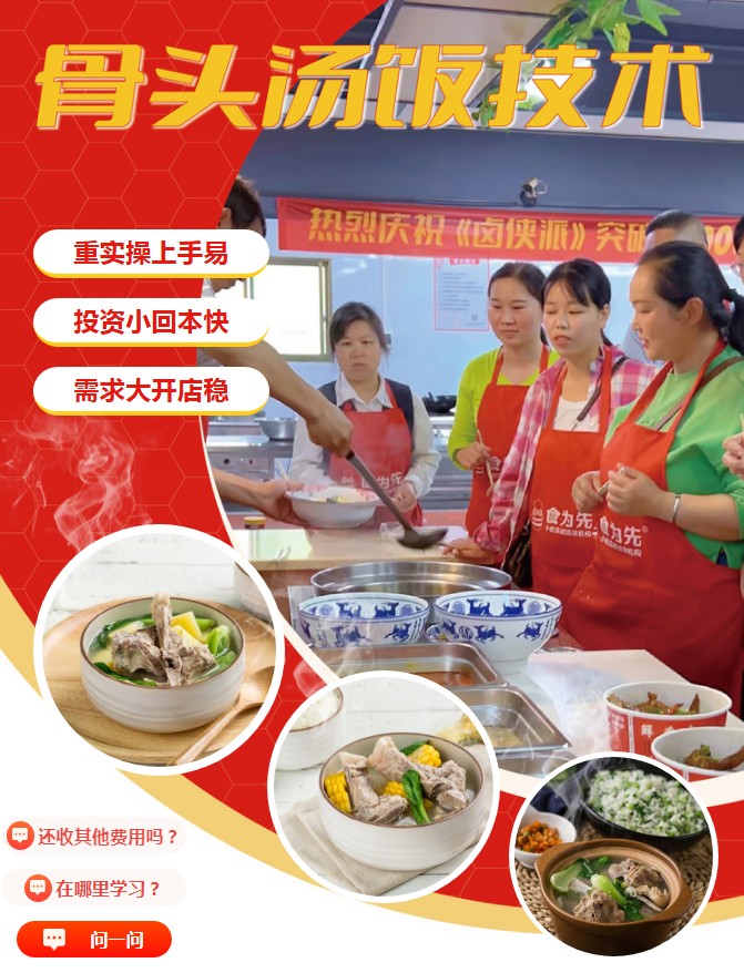 上海骨头汤饭技术培训,在繁忙的都市生活中,一碗热气腾腾、香气四溢的骨头汤饭,总能给人带来满满的温暖与满足。如今,食为先骨头汤饭技术培训正式开启,旨在将这一美味技艺传承下去,帮助创业者实现创业梦想。