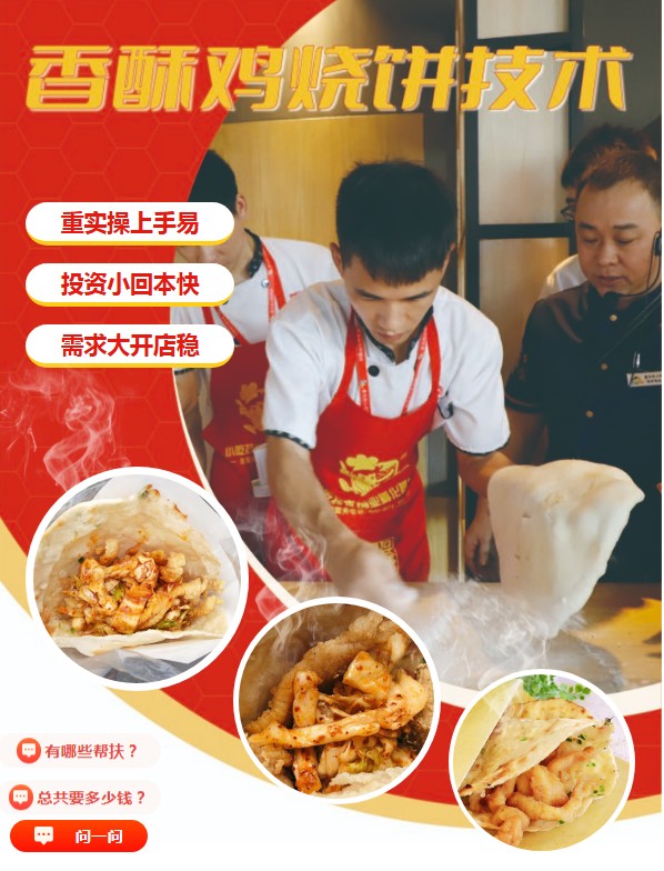 上海香酥鸡烧饼技术培训,在美食文化日益繁荣的当下,特色小吃凭借其独特的口感、便捷的食用方式和亲民的价格,成为了餐饮市场上一颗璀璨的明星。香酥鸡烧饼,作为一款融合了传统与创新的美食,将香酥的鸡肉与松软可口的烧饼完美结合,每一口都散发着诱人的香气,满足了广大消费者对美味与便捷的双重需求。